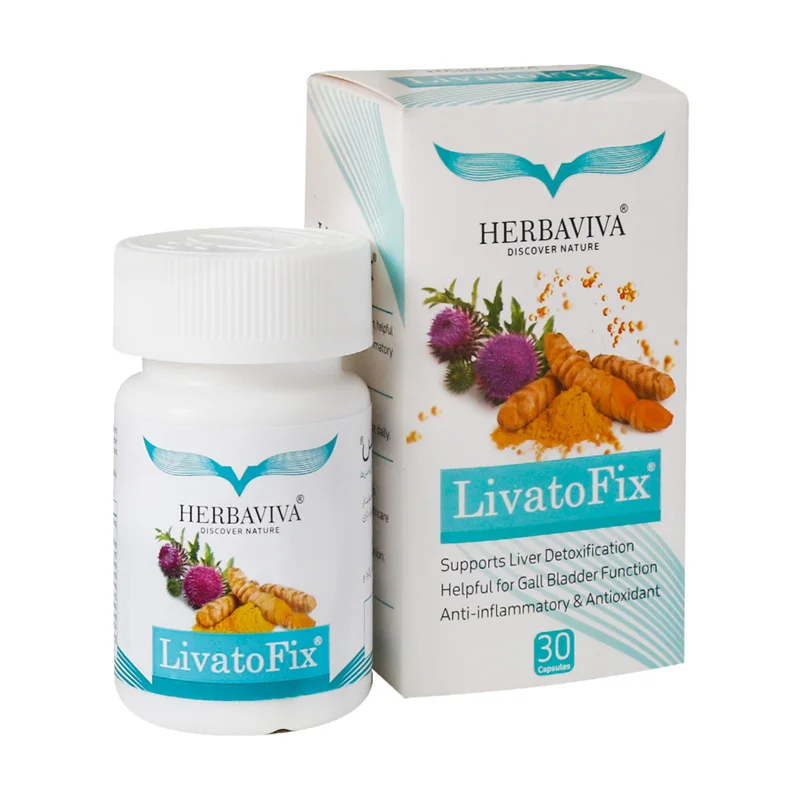 کپسول لیواتوفیکس هرباویوا Herbaviva Livatofix محصولی گیاهی بوده که در محافظت از سلولهای کبدی، پاکسازی کبد و تقویت عملکرد صفرا بسیار موثر و مفید است. عصارههای موجود در این فراورده حاوی خاصیت آنتی اکسیدانی، ضد فیبروزی، باز ساخت سلولهای آسیب دیده کبد، افزاینده صفرا و محافظ سلولهای کبدی هستند.