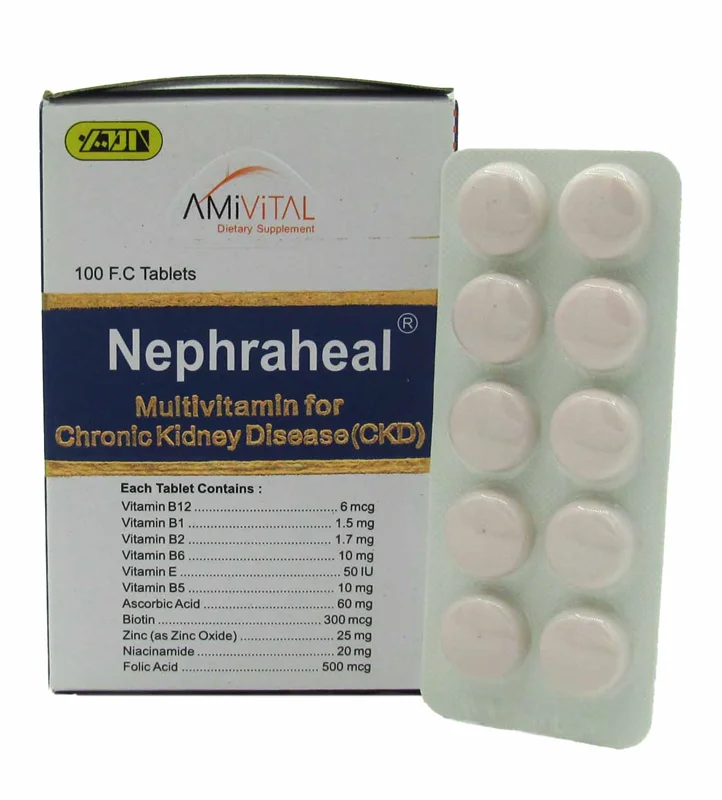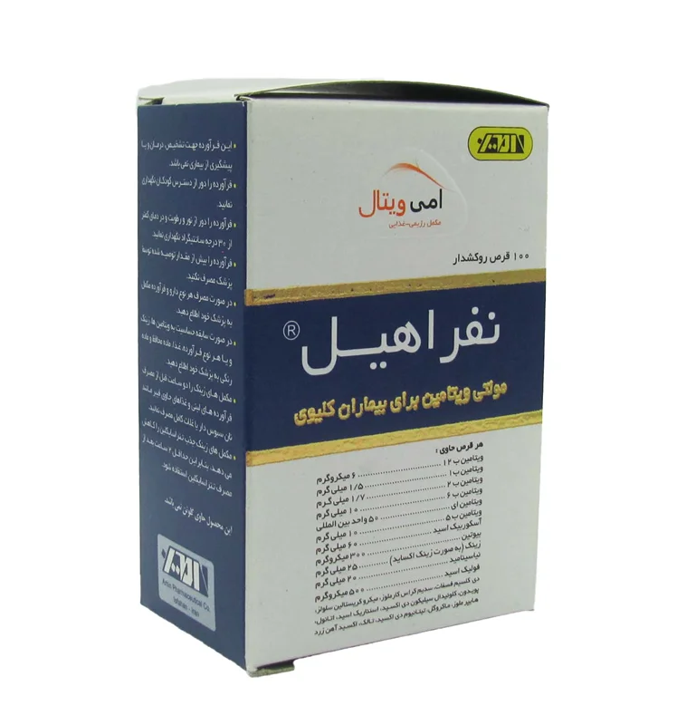 قرص مولتی ویتامین نفراهیل امی ویتال حاوی ویتامینهای محلول در آب است که برای بیماران کلیوی در دوران دیالیز مناسب است. این محصول به منظور جبران کمبود ویتامینها در بیماران مزمن مورد استفاده قرار میگیرد.