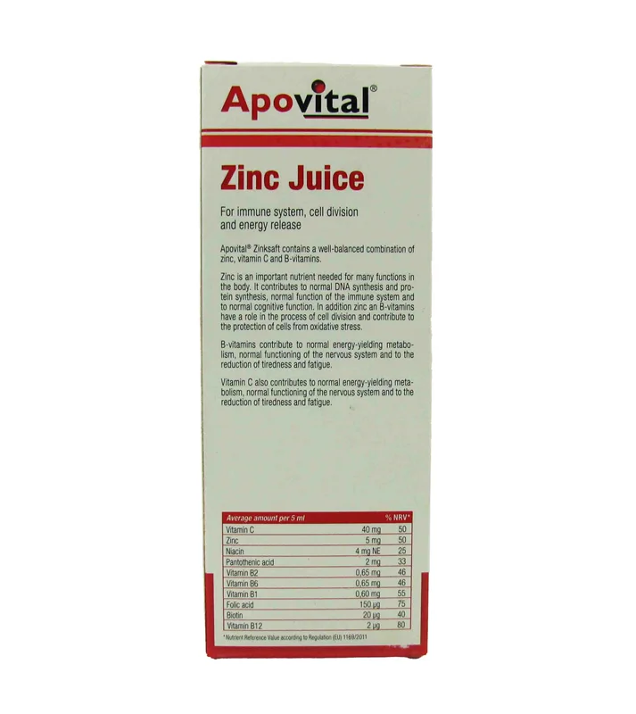 شربت زینک سافت آپوویتال با ترکیباتی از زینک و ویتامینهای گروه B به حفظ سلامت پوست، مو و ناخن کمک کرده و سیستم ایمنی را تقویت میکند. زینک در بهبود ساخت پروتئینها، تقسیم سلولی و محافظت از سلولها در برابر استرسهای اکسیداتیو نقش دارد. این محصول همچنین با بهبود متابولیسم انرژی، عملکرد سیستم عصبی و رفع خستگی مؤثر است. برای افزایش اشتها، دریافت کافی ویتامین B۱ (تیامین) به همراه زینک اهمیت دارد و به وزنگیری و رشد کمک میکند.
