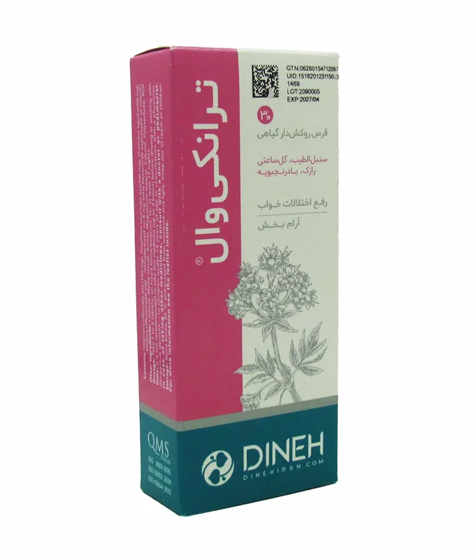 قرص ترانکی وال دینه حاوی عصاره گیاهانی از جمله سنبل الطیب، گل ساعتی، رازک و بادرنجبویه است. این قرص بهبود کیفیت خواب را تسهیل میکند، اختلالات خواب را رفع میکند، اضطراب و بیقراری را کاهش میدهد و اثر آرامبخش دارد. همچنین، دارای اثر مسکن بوده و دردهای عصبی را تسکین میدهد. مصرف منظم آن همچنین باعث میشود تا بیدار شدنهای مکرر در طول شب کمتر شود و فرد بهتر به خواب بیفتد. این محصول وابستگی ایجاد نمیکند.