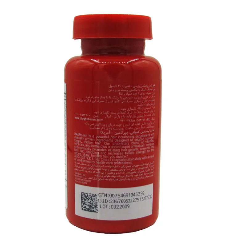 کپسول تقویت کننده مو هیرتامین یک مولتی ویتامین بسیار قوی و مشهور برای موهای شما است. کپسول هیرتامین علاوه بر تقویت استحکام ریشه و ساقه مو، از ریزش آنها هم جلوگیری میکند. در ساخت کپسول هیرتامین از ترکیبات کاملا گیاهی استفاده شده است.