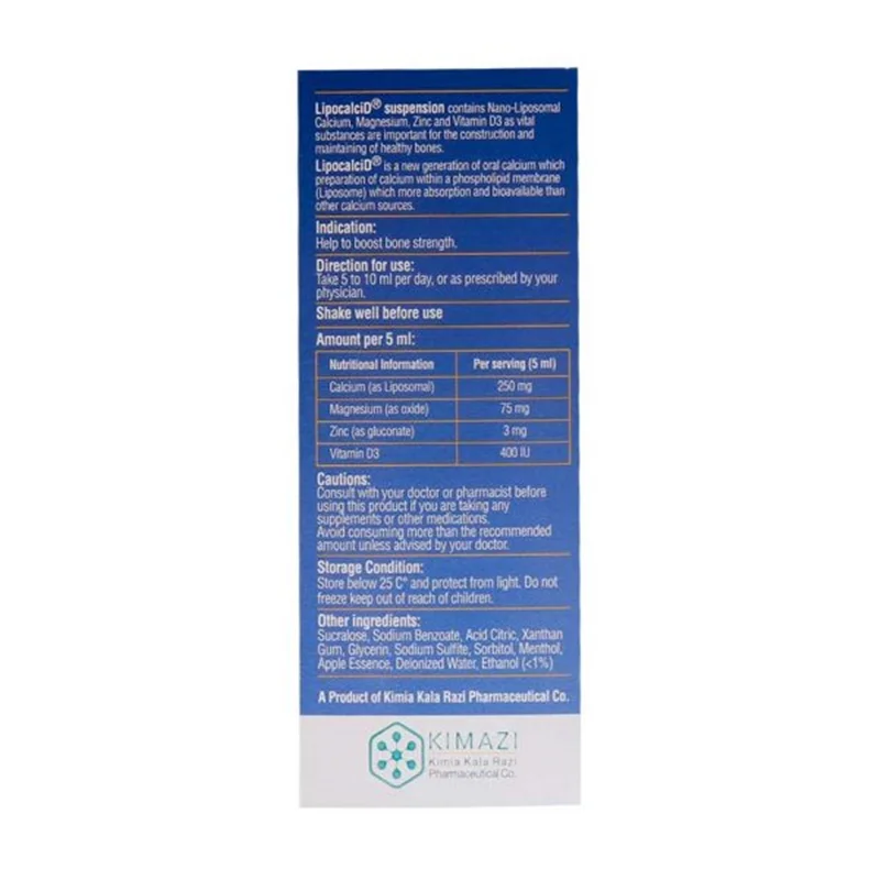 سوسپانسیون لیپوکلسید به دلیل ترکیبات خود، برای حفظ سلامت استخوان و جلوگیری از پوکی استخوان از اهمیت بالایی برخوردار است. این فراورده دارای کلسیم در مقیاس نانو بوده و در پوششی از فسفولیپید قرار دارد و به صورت لیپوزومال درآمده است. این ویژگیها موجب فراهمی زیستی و جذب بالاتر کلسیم در مقایسه با سایر منابع کلسیم در این شربت شده و افزایش قد کودکان را ممکن میسازد.