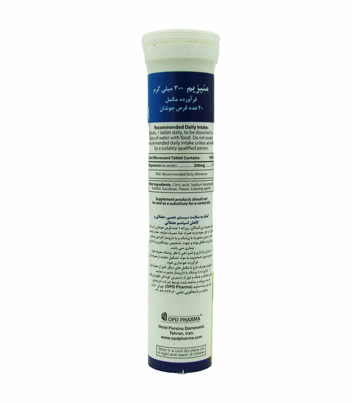 - قرص جوشان منیزیم 300 میلی گرم او پی دی فارما مکمل بوده و جهت تشخیص، پیشگیری و درمان نیست.