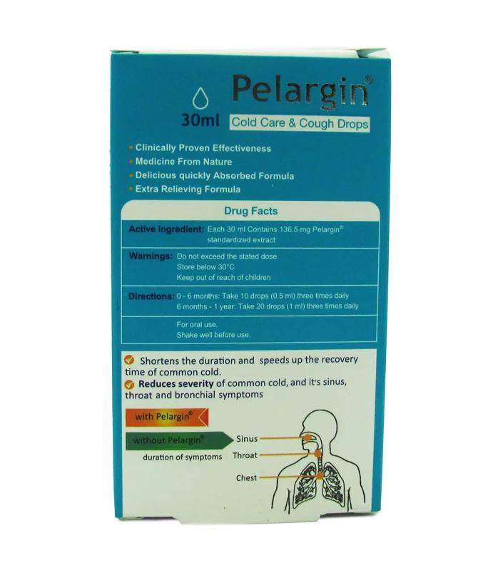 پلارژین موجود در این قطره دارای خواص ضد التهابی، ضد ویروسی و تقویتکننده سیستم ایمنی است. این خواص باعث کاهش التهاب در دستگاه تنفسی، مهار تکثیر ویروسها و تقویت سیستم ایمنی بدن میشود.