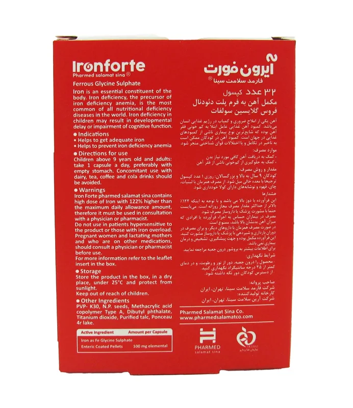 ویژگی های کپسول آیرون فورت فارمد سلامت سینا