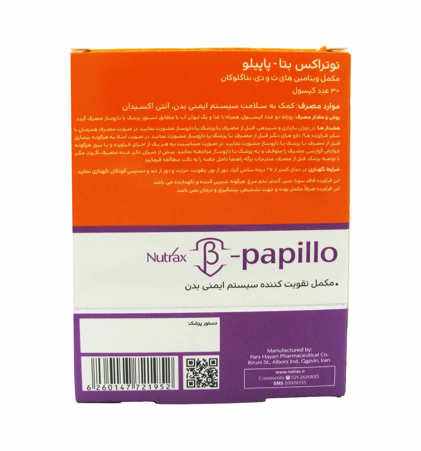 خرید کپسول بتا پاپیلو نوتراکس از داروخانه اینترنتی دارووب، روشی آسان و مطمئن برای تهیه داروهای مورد نیاز است با چند کلیک ساده، میتوانید طیف وسیعی از داروها را بدون نیاز به خروج از خانه سفارش داده و در کوتاهترین زمان ممکن تحویل بگیرید.