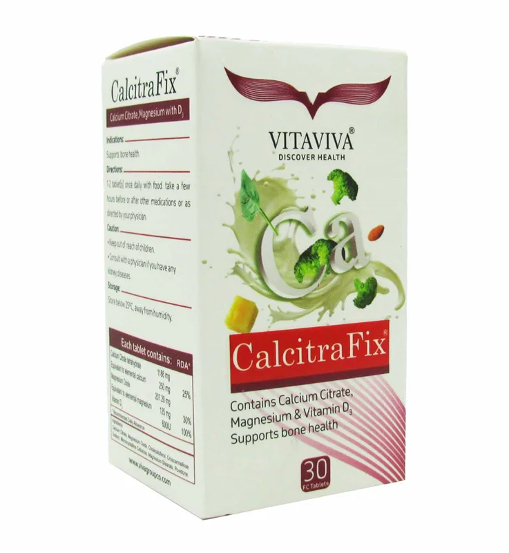 قرص کلسیترا فیکس ویتاویوا با ترکیباتی مثل کلسیم، منیزیم و ویتامین D، برای تقویت استخوان و پیشگیری از پوکی استخوان مفید است. مشکلات استخوانی و مفصلی که امروزه بسیار شایع شدهاند، اغلب به دلیل سبک زندگی کمتحرک و عادات غلط ایجاد میشوند. برای بهبود این وضعیت، علاوه بر اصلاح سبک زندگی، استفاده از مکملهای تقویتی مانند کلسیترافیکس که به جذب بهتر کلسیم کمک میکند، میتواند موثر باشد.