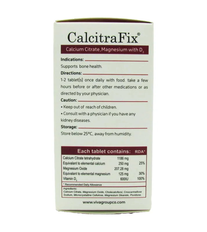 - حاوی کلسیم سیترات، منیزیم و ویتامین D3 موثر در افزایش تراکم مینرالی استخوان