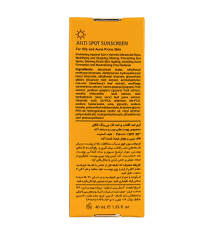 ترکیبات کرم ضد آفتاب و ضد لک بیرنگ پوست چرب و مستعد آکنه SPF30 لافارر