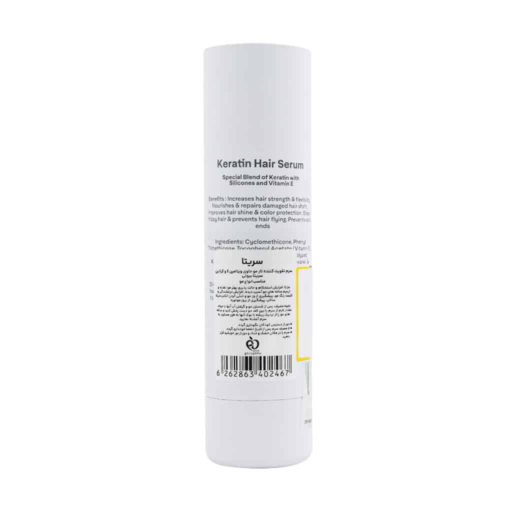 سرم کراتین مو سریتا با ترکیب کراتین و ویتامین E، یک محصول چندکاره برای مراقبت از موهاست که همزمان سه عملکرد اساسی دارد: ترمیم ساقه موهای آسیب دیده، افزایش درخشندگی و حالت پذیری، و ایجاد لایه محافظتی در برابر عوامل آسیب زا. این سرم با تغذیه عمقی موها، از ایجاد موخوره و وز شدن جلوگیری کرده و موها را نرم و ابریشمی میکند. فرمول سبک آن باعث میشود بدون سنگین کردن موها، اثرات قابل توجهی در بهبود سلامت و ظاهر موها ایجاد نماید.