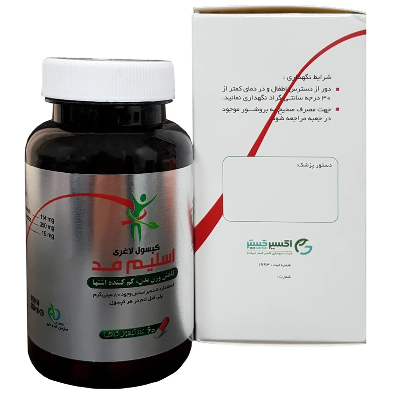 اسلیم مد یک مکمل گیاهی کاهش وزن در فرم کپسول است که با ترکیب موادی مانند چای سبز، پکتین سیب و ویتامین B6 به کنترل اشتها و افزایش سوخت و ساز بدن کمک میکند. این محصول با ایجاد احساس سیری و تسریع چربیسوزی، به عنوان مکمل رژیمهای لاغری استفاده میشود.