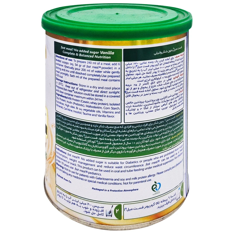 پودر فست میل بدون شکر یک مکمل غذایی کامل حاوی ویتامینها و مواد معدنی ضروری است که بهویژه برای افراد مبتلا به دیابت و مشکلات قند خون مناسب میباشد. این محصول با شاخص گلیسمی پایین، ضمن تأمین انرژی مورد نیاز بدن، باعث افزایش ناگهانی قند خون نمیشود. ترکیبات مؤثری مانند کلسیم، ویتامین D، اینوزیتول و فیبر در این فرمولاسیون، علاوه بر حمایت از سلامت استخوانها و قلب، به تنظیم قند خون و بهبود عملکرد دستگاه گوارش کمک میکنند. با این حال، محدودیتهای مصرف برای برخی گروهها مانند کودکان زیر 10 سال و افراد با شرایط خاص پزشکی وجود دارد.