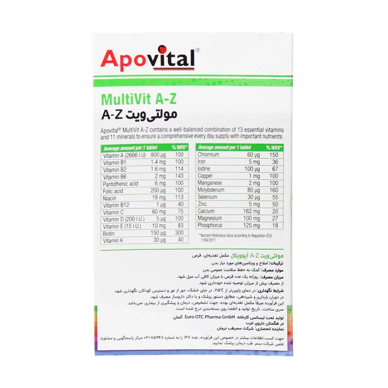 ترکیبات قرص مولتی ویتامین آ-زد آپوویتال