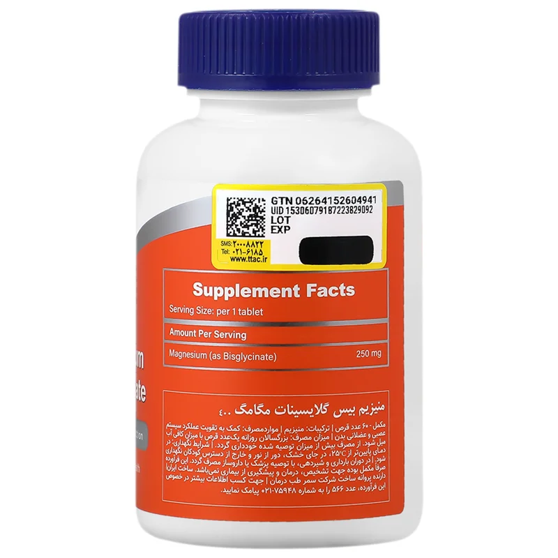 | منیزیم (منیزیم بیس گلیسینات) | Magnesium (From Magnesium Bisglycinate) | 250 میلی گرم |
