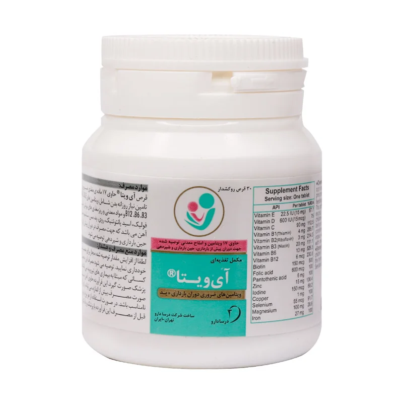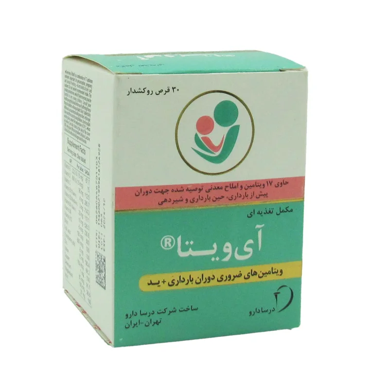 قرص آی ویتا ساخت شرکت درسا دارو ایران میباشد. این محصول حاوی 30 عدد قرص در بستهبندی به فرم قوطی میباشد.
