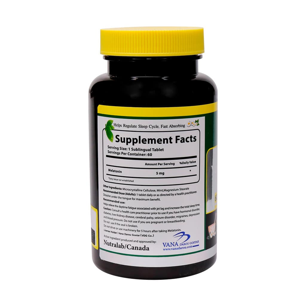 - حاوی ۵ میلیگرم ملاتونین در هر قرص