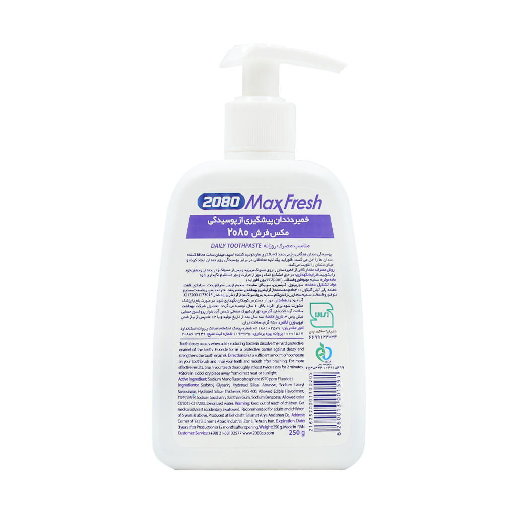 خمیردندان ضد پوسیدگی مکس فرش 2080 یک محصول تخصصی برای مراقبت پیشگیرانه از دندانهاست که بر پایه ترکیبات فلورایدی (مانند سدیم فلوراید و فلوراید قلع) و میکرو کلسیم فعال طراحی شده است. هدف اصلی این محصول، تقویت مینای دندان، ایجاد یک سد محافظتی در برابر اسیدهای باکتریایی و کمک به پیشگیری از پوسیدگی است. بستهبندی پمپی آن علاوه بر سهولت مصرف، از آلودگی محصول جلوگیری میکند. با وجود تأکید بر عملکرد محافظتی قوی، این خمیردندان ممکن است برای افرادی که به دنبال اثرات سفیدکنندگی فوری یا درمان مشکلات لثه هستند، به تنهایی کافی نباشد. به طور کلی، برای افرادی که اولویت اصلیشان جلوگیری از پوسیدگی و استحکام بخشیدن به ساختار دندان در طولانی مدت است، گزینهای منطقی و کاربردی محسوب میشود.
