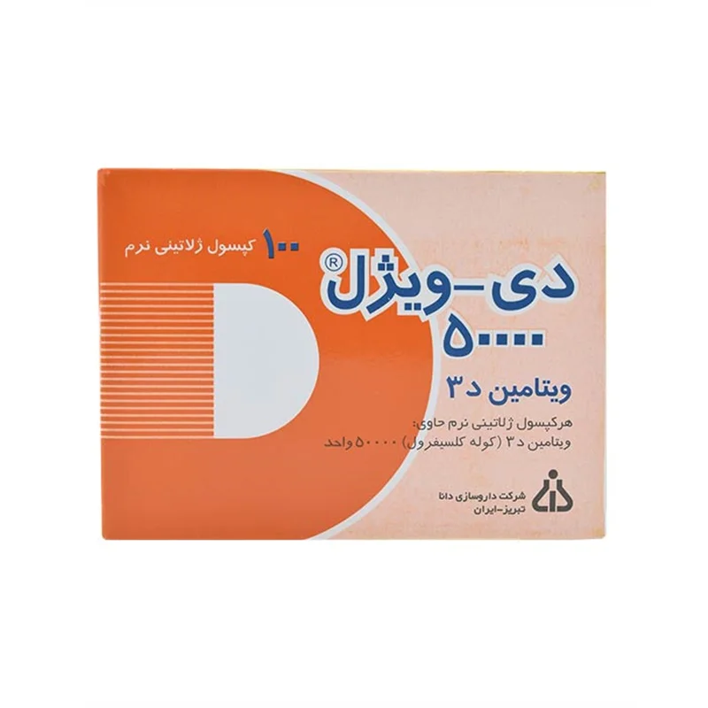 ویتامین D یکی از عوامل موثر در ساختن و نگهداری سلامتی استخوانها است که در دسته ویتامینهای محلول درچربی قرار گرفته و مصرف آن در طول عمر ضرورت دارد. از سوی دیگر، کلسیم که عنصر اصلی تشکیل دهنده استخوان و دندان است تنها در صورت حضور ویتامین D قابل جذب است. کپسول ویتامین D3 دی ویژل از شرکت داروسازی دانا در بستهبندی ۱۰۰ تایی عرضه شده که هر کپسول آن حاوی ۵۰۰۰۰ واحد از این ویتامین مهم و ارزشمند است.
