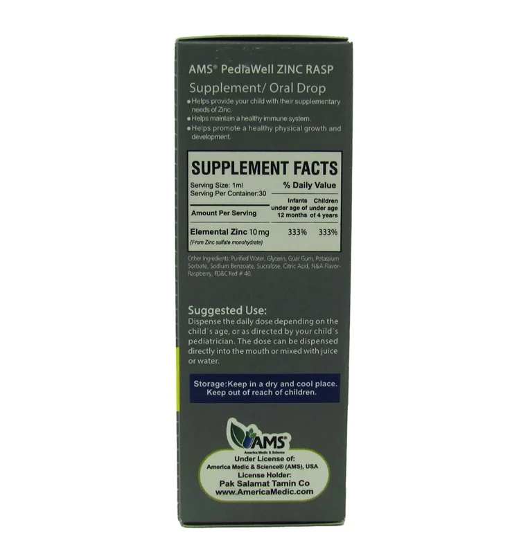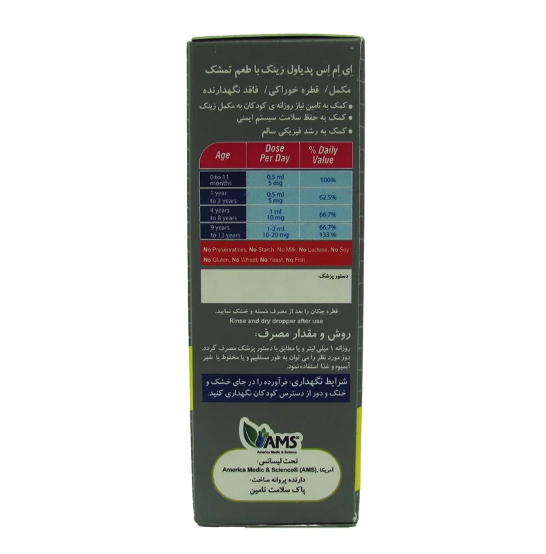 قطره خوراکی پدیاول زینک ای ام اس یک مکمل غذایی است که برای تأمین نیاز روزانه کودکان به زینک طراحی شده است. استفاده از قطره پدیاول زینک میتواند به تقویت سیستم ایمنی بدن، بهبود رشد فیزیکی سالم و کاهش ابتلا به بیماریهای عفونی کمک کند.