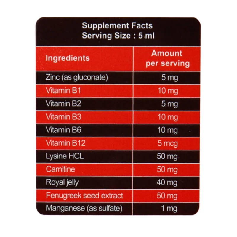 - حاوی رویال ژلی، گیاه شنبلیله و منگنز