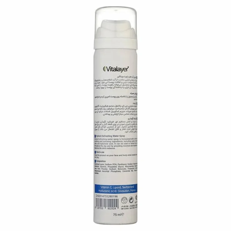 اسپری آبرسان هیدراویت ویتالیر، ترکیبی از آب معدنی، املاح معدنی و هیالورونیک اسید است که به لطافت و نرمی پوست کمک میکند. این اسپری، علاوه بر حس خوشایند برای پوست، در حفظ سلامت و رطوبت رسانی آن نیز اثرگذار است. اسپری آب ویتالیر با مواد مغذی و آبرسانی عمقی، از خشکی و کشیدگی پوست جلوگیری میکند و ایجاد حس مرطوبیت و نرمی را فراهم میکند. این محصول با داشتن املاح معدنی و مواد غذایی، التهابات و قرمزی پوست را کاهش میدهد و به تسکین آنها کمک میکند. اسپری آب ویتالیر مناسب برای پوست خشک و حساس است و بهبود بافت و ظاهر پوست را تحریک میکند.