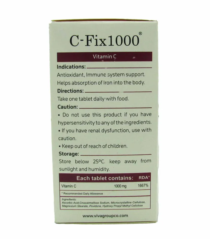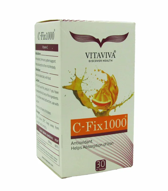 کپسول سی فیکس ۱۰۰۰ ویتاویوا دارای ۱۰۰۰ میلی گرم ویتامین C است که برای تقویت سیستم ایمنی بدن و افزایش جذب آهن در بدن مناسب است. افراد با کمبود آهن، حتی خفیف، ممکن است علائم کم خونی از جمله پرخاشگری یا کاهش اشتها را تجربه کنند. مصرف همزمان ویتامین C با خوراکیها میتواند جذب آهن را افزایش دهد. ویتامین C نقش اساسی در بهبود سیستم ایمنی ایفا میکند، اما مصرف زیاد آن توصیه نمیشود. یک پرتقال در روز میتواند نیاز روزانه به ویتامین C را تأمین کند. ویتامین C میتواند رادیکالهای آزاد را نیز خنثی کرده و آسیب سلولی را کاهش دهد.