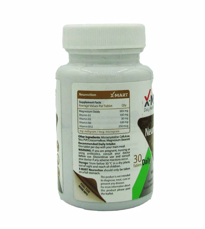 هر قرص نوروویتون ایکس مارت سرشار از ویتامینهای گروه B و منیزیم است. این ترکیبات ارزشمند برای سلامتی شما ضروری هستند و به تقویت سیستم عصبی و عضلانی، حفظ سلامت قلب و عروق، تقویت استخوانها و دندانها، بهبود خلق و خو و افزایش انرژی کمک میکنند. منیزیم موجود در این مکمل نیز از پوکی استخوان جلوگیری کرده و عضلات شما را قویتر میکند.
